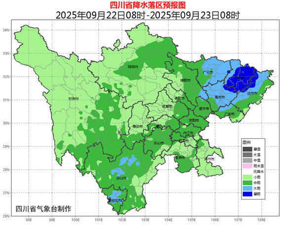 今天,四川大部仍将出现降雨,其中四川盆地一带雨势依然较强;明后天,四川大部的降雨将逐渐收敛。四川省气象台预计,今天白天到晚上,四川盆地各市阴天有阵雨或雷雨,雨量小到中雨,其中广元、巴中、达州、南充4市有大雨,局部暴雨;川西高原和攀西地区阴天间多云有阵雨或雷雨,雨量小到中雨,局部大雨。同时,四川盆地最高气温20至23℃,较为凉爽。